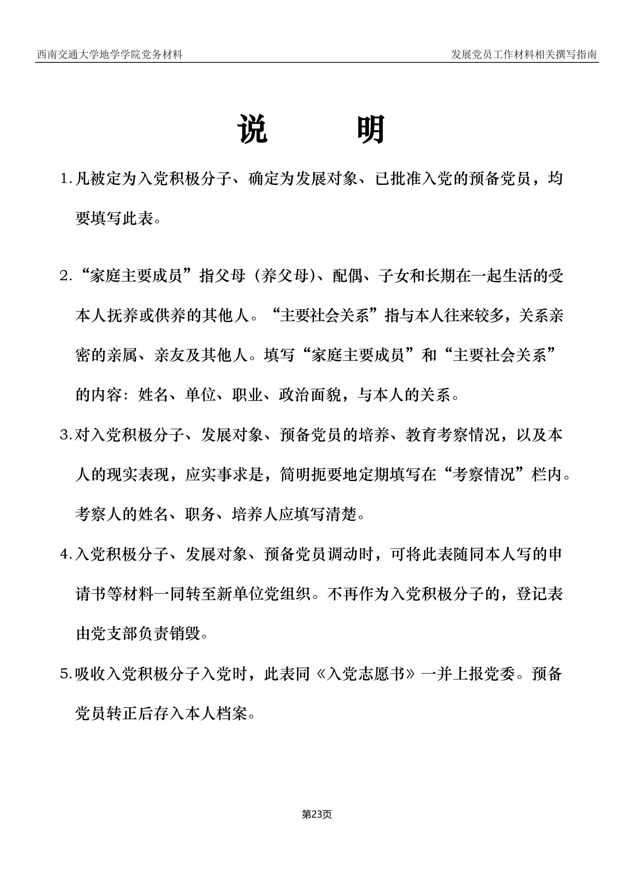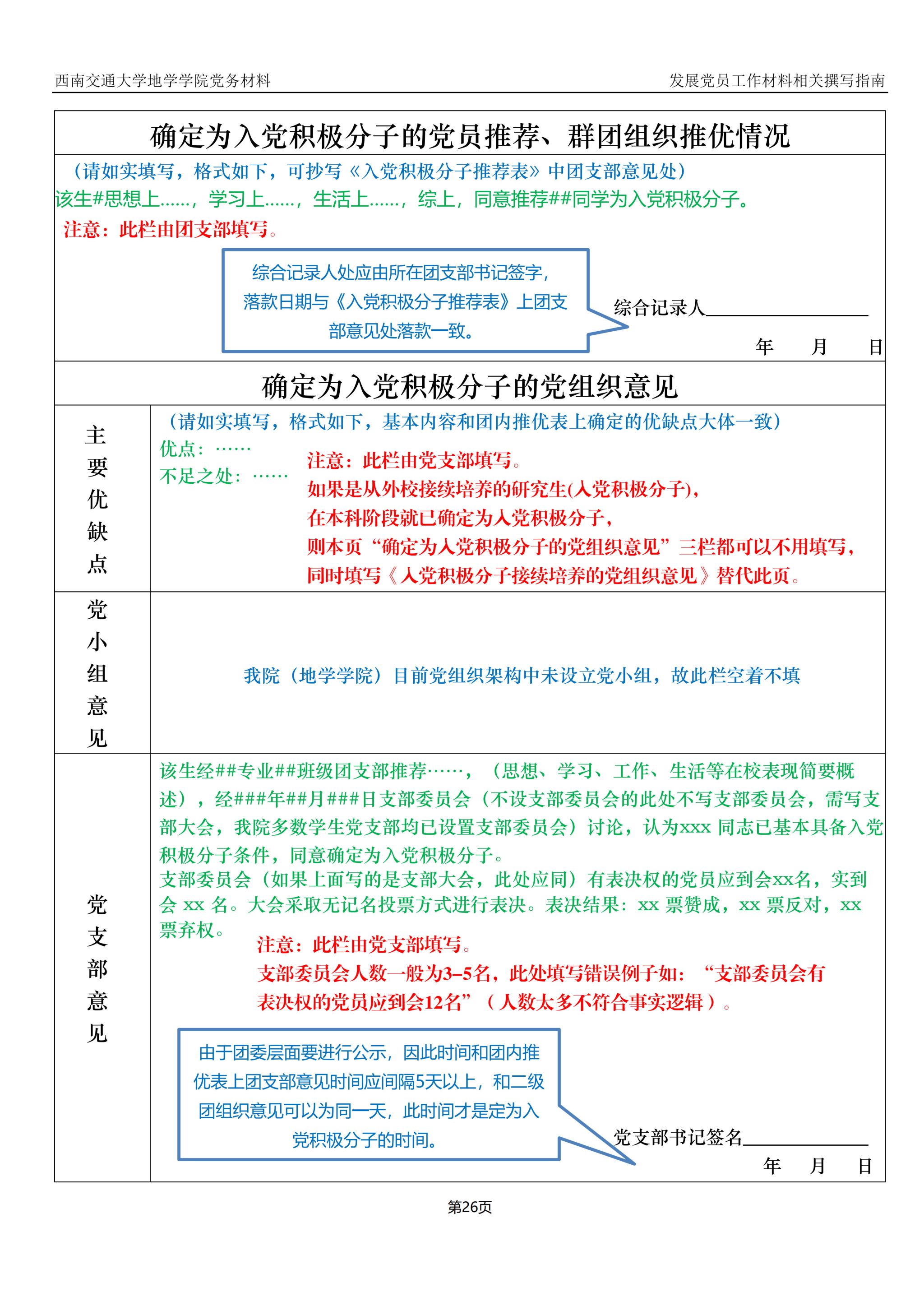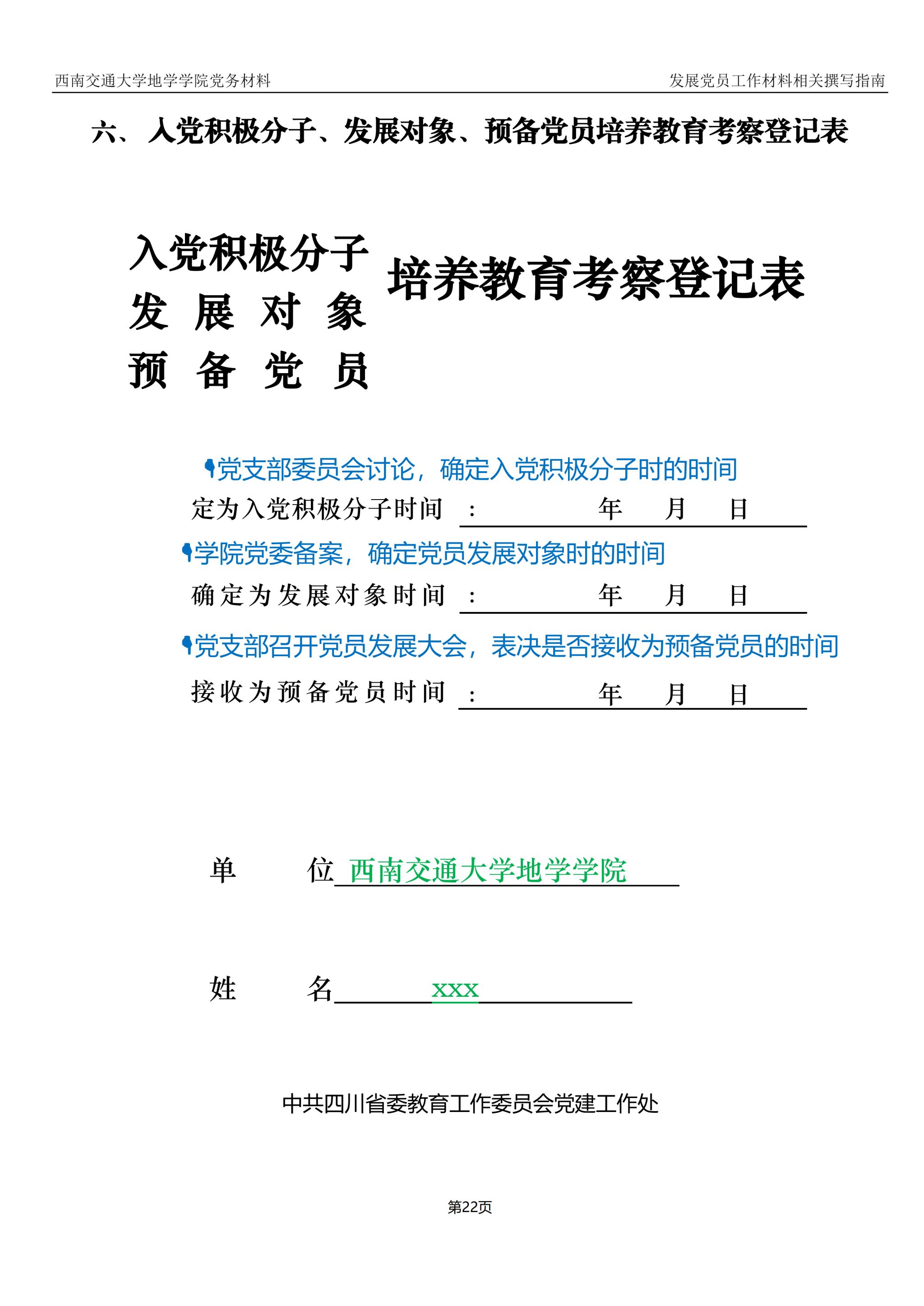 入党积极分子、发展对象、预备党员培养教育考察登记表撰写指南: