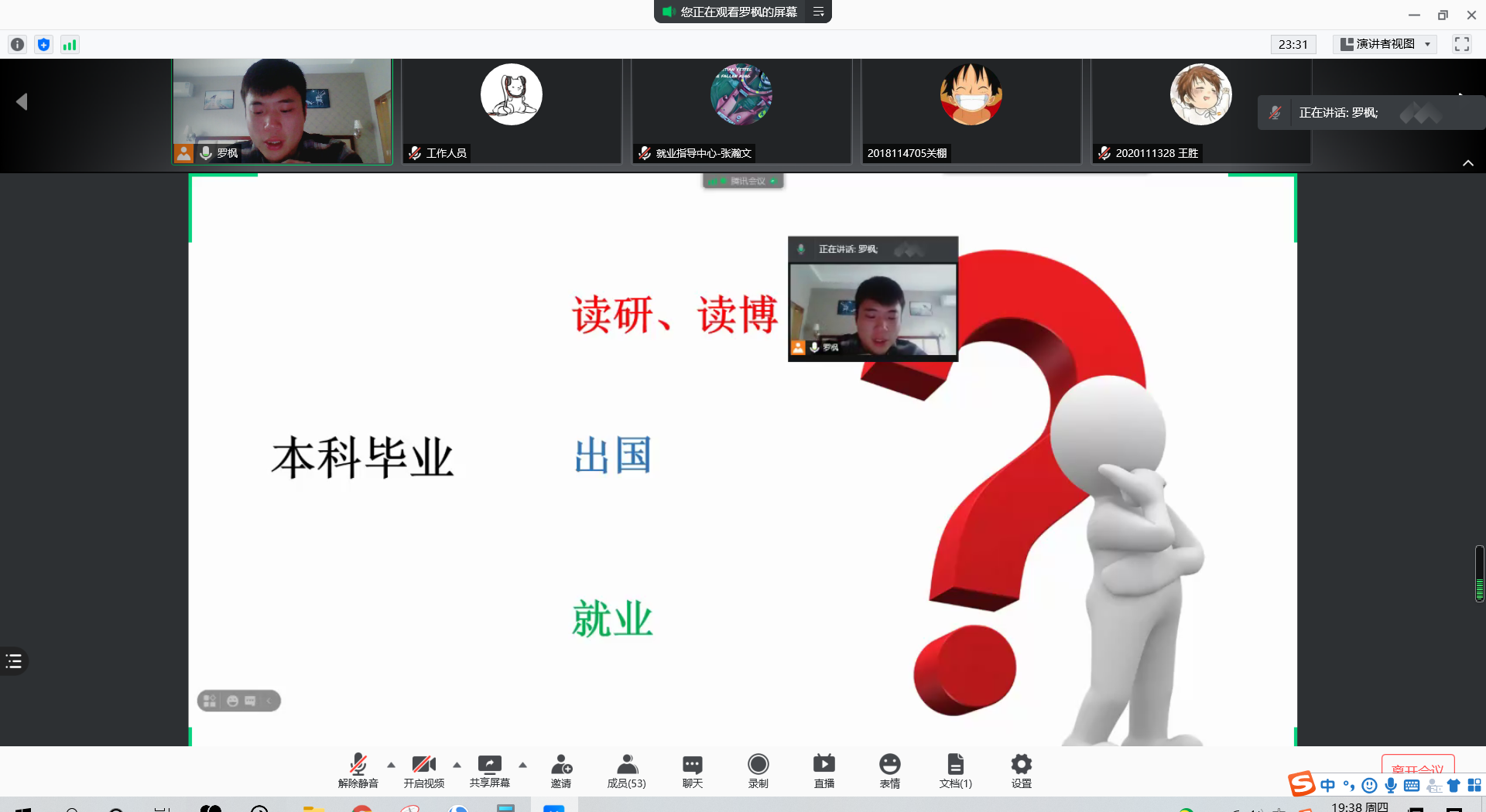 学长结合自身经历,给我们讲述了本科和读研的特点,用生动的比喻让我们切身体会在大学四年结束后是继续深造还是出走社会时的选择。在学长看来,继续深造代表着更深层次的自我提高、更广阔的专业视野和更好的人脉。对比之下,本科毕业后找工作有着更高的难度和更复杂的就业环境。无论何时,抓住机遇、注意细节都是成功无比重要的一环。