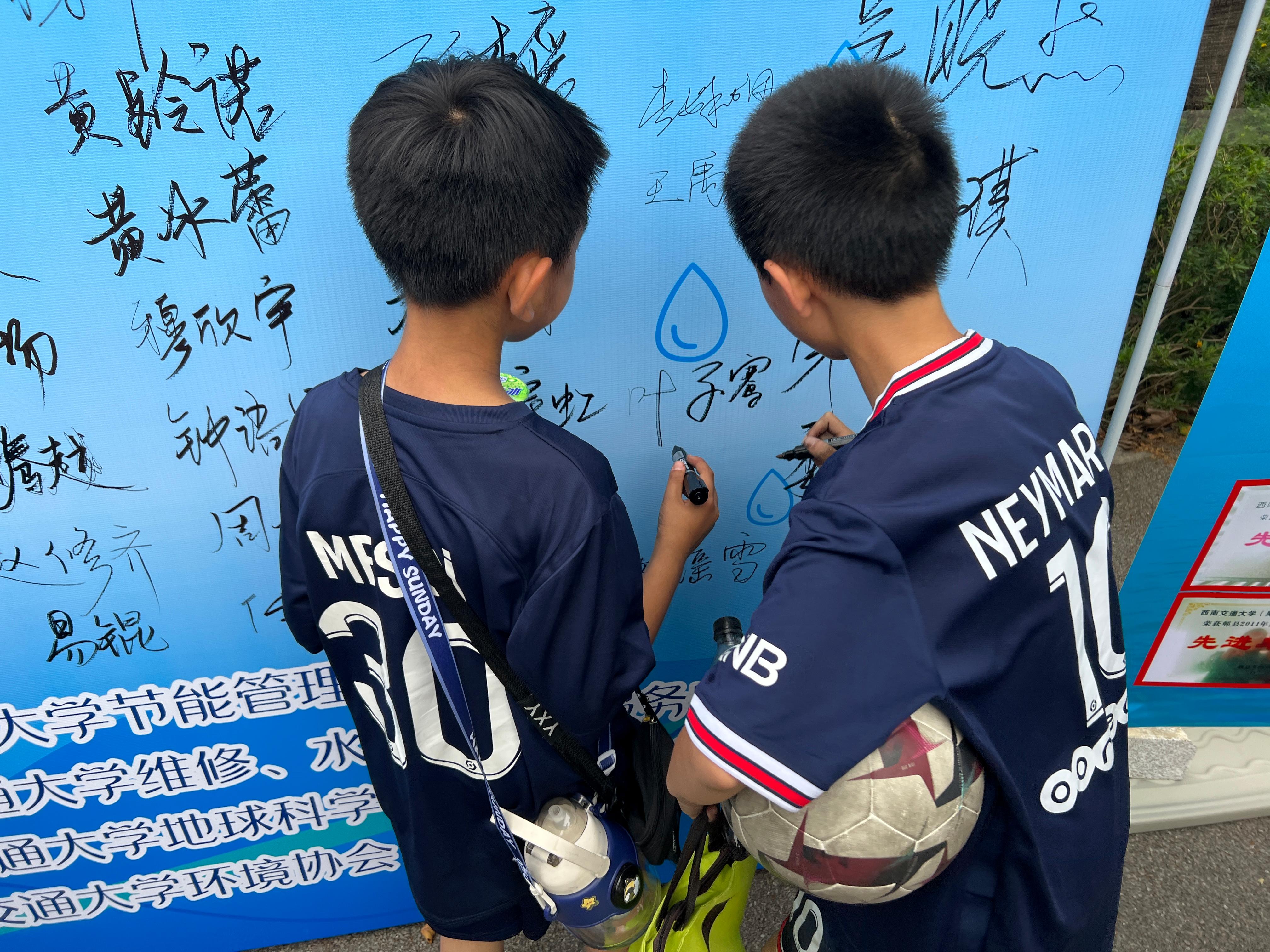 党委副书记郑波老师指导并全程参与了本次活动,在签字墙下为师生宣讲节水知识,呼吁大家节水从现在做起、从小事做起、从自己做起。