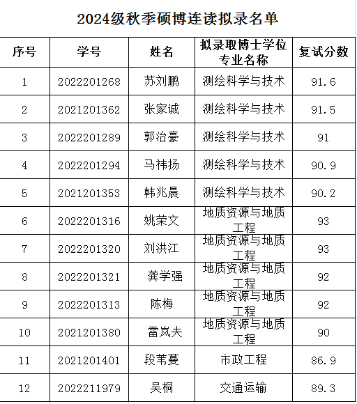 经拉斯维加斯娱乐城 招生工作领导小组选拔,以下同学符合选拔条件,经过复试,取得2024年硕博连读拟录取资格(最终录取以研招办公告为准),现予以公示,公示期为五个工作日,2023年12月28日至2023年1月4日,如有异议请在公示期内联系黄老师,电话:66367592。