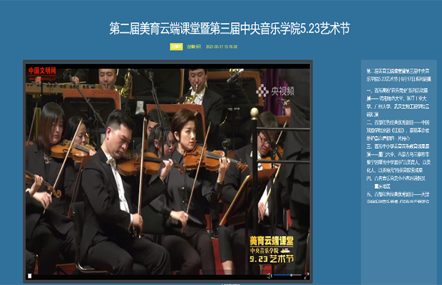 此次的活动内容是观看美育云端课堂,分为百部红色经典优秀剧目展播和百所高校音乐党史教育展播两个部分。