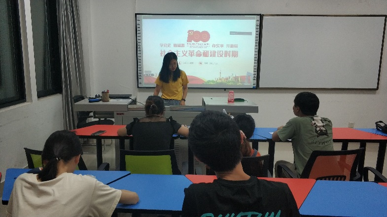 随后,梁欣荣同志从党的创建时期、大革命时期、土地革命时期、抗日战争时期和解放战争时期,分享了中国共产党进行新民主主义革命的历史。赵静同志从社会主义革命和建设时期的探索阶段及特征、社会主义时期的探索历程、中国从新民主主义向社会主义的转变问题以及建设有中国特色的社会主义理论的形成与发展四个方面,带领大家一同学习了社会主义革命和建设时期,中国共产党的奋斗历史。罗澜同志从改革开放的进程和改革开放的意义两方面,讲解了改革开放这一伟大历史转折。谷思文同志从高举中国特色社会主义伟大旗帜、为全面建成小康社会而奋斗和实现中华民族伟大复兴的中国梦三方面,分享了党的十八大以来,我党的奋斗过程。最后管允粽同志按照时间顺序,从历史变革和校训精神两方面讲述了西南交通大学的历史,并分享了唐山交大五老的生平事迹。