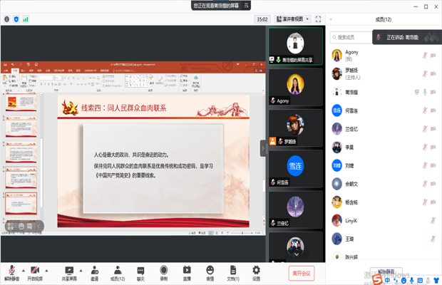 为了党员同志更好地做到学史明理、学史增信、学史崇德、学史力行,从党的百年伟大奋斗历程中汲取智慧和力量,2021年9月1日晚,研20级环境三班通过腾讯会议在线上开展了“阅读百年党史,赓续红色精神”的主题读书沙龙活动。