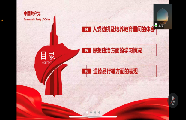 首先由姬彦东同志介绍了本次大会的议程,随后入党积极分子孙国敏、蒋玉冰、王瑄和王婵分别进行了入党积极分子的推优答辩。四位入党积极分子分别就入党动机、对党的认识和成为入党积极分子以来在学习党的思想、青年大学习、研究生学习生活、科研实践等方面进行了推优答辩。