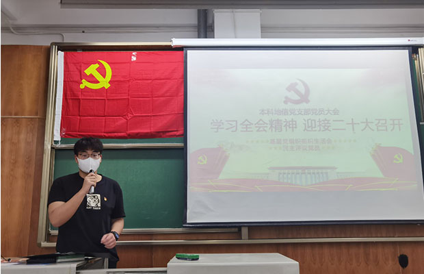 本科地信党支部于X4153开展了党员大会,主要内容为组织生活会和民主评议党员,旨在引导广大党员深刻认识“两个确立”的决定性意义,大力弘扬伟大建党精神,坚持自我革命,把思想和行动统一到党中央重大决策部署上来,以优异成绩迎接党的二十大胜利召开。