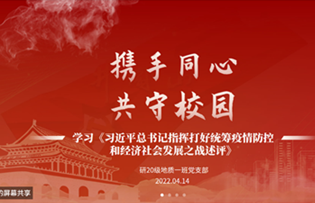 为深入了解当下新冠疫情多点、多面、频发的特点,教育引导支部成员正确认识严峻复杂的疫情防控形势,自觉配合学校疫情防控工作,2022年4月14日晚19:30,研20级地质一班党支部组织线上开展“携手同心 共守校园”主题党日活动,会议由邢本聪同志主持,支部23名成员与会。此次党日活动内容为集中学习《习近平总书记指挥打好统筹疫情防控和经济社会发展之战述评》。