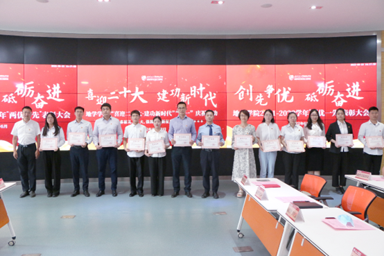 党委关秦川书记、许军华副书记依次为获得“先进党支部”、“优秀党务工作者”、“优秀党员”的同志颁发荣誉证书,并进行合影留念。