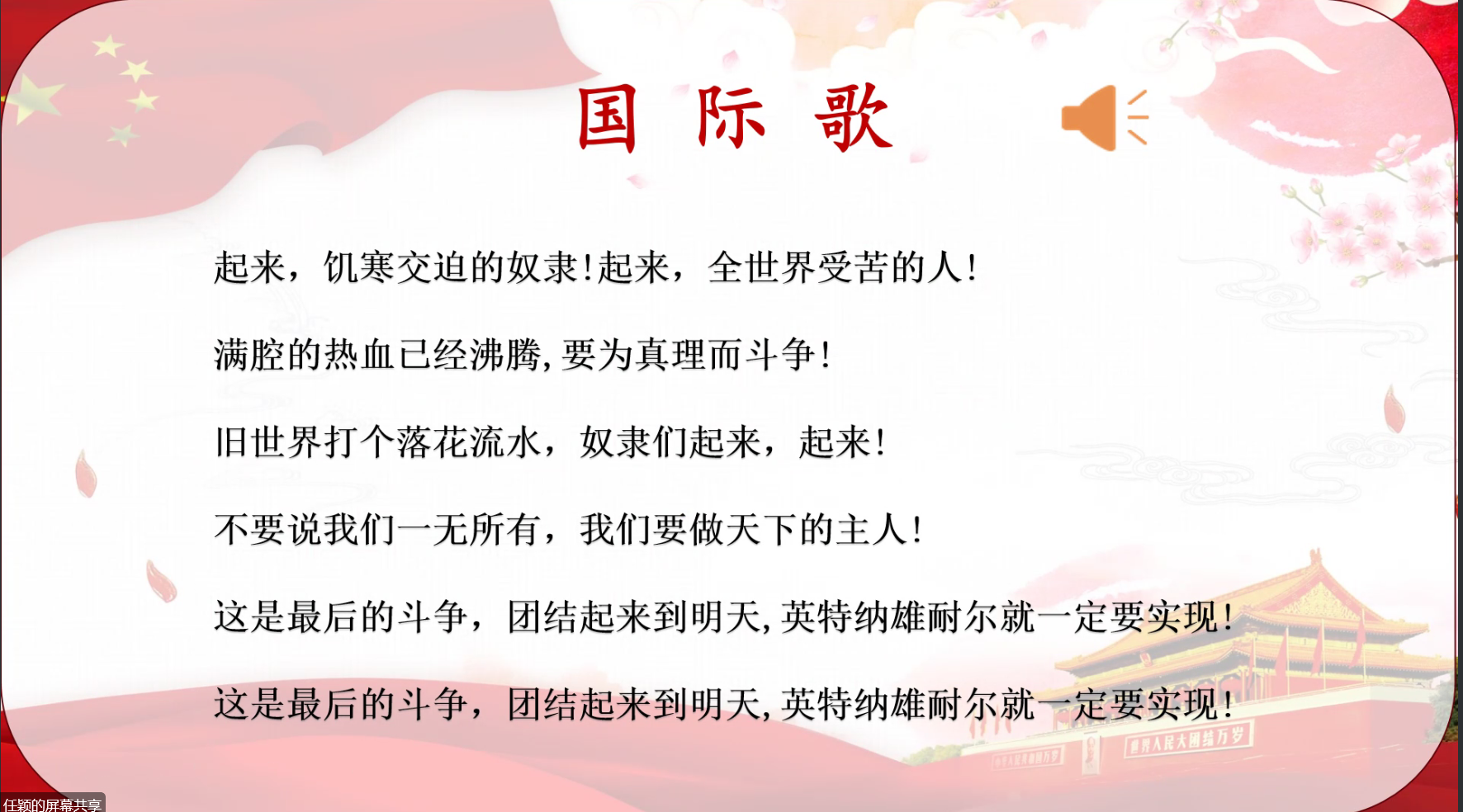 会议开始,全体成员奏唱中华人民共和国国歌,接着主持人任颖同志为大家介绍了本次会议的主题,并动员参会成员认真学习《四川省高校“优秀支部工作法”》,希望各位同志认真总结提炼支部工作方法,探索党组织和党员充分发挥作用的新路径。