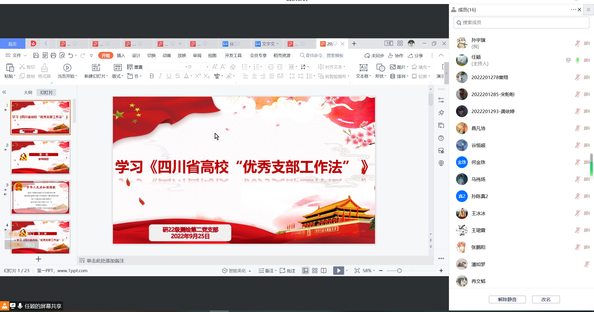 研22级第二党支部全体党员同志。此次活动旨在让党员同志们通过学习四川省各个高校的优秀支部工作方法,探索创新党建工作方法,更好发挥党支部的战斗堡垒作用和党员的先锋模范作用,推动支部党建工作再上新台阶。会议由党支部书记任颖同志主持。