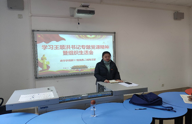 研17级地质二班党支部学习王顺洪书记专题党课精神主题教育活动暨组织生活会在X4137教室顺利召开,党支部八名党员参加了此次会议。会议由支部书记裴月霓同志主持。