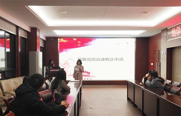 2019年11月21日,研19级环境三班党支部于西南交通大学犀浦校区X4520教室顺利开展了预备党员转正支部大会。会议讨论了关于罗唯叶同学申请转为正式党员的问题。会议由党支部书记白慧主持,组织委员孟丹指导及全体党支部成员和6位积极分子出席了此次会议。