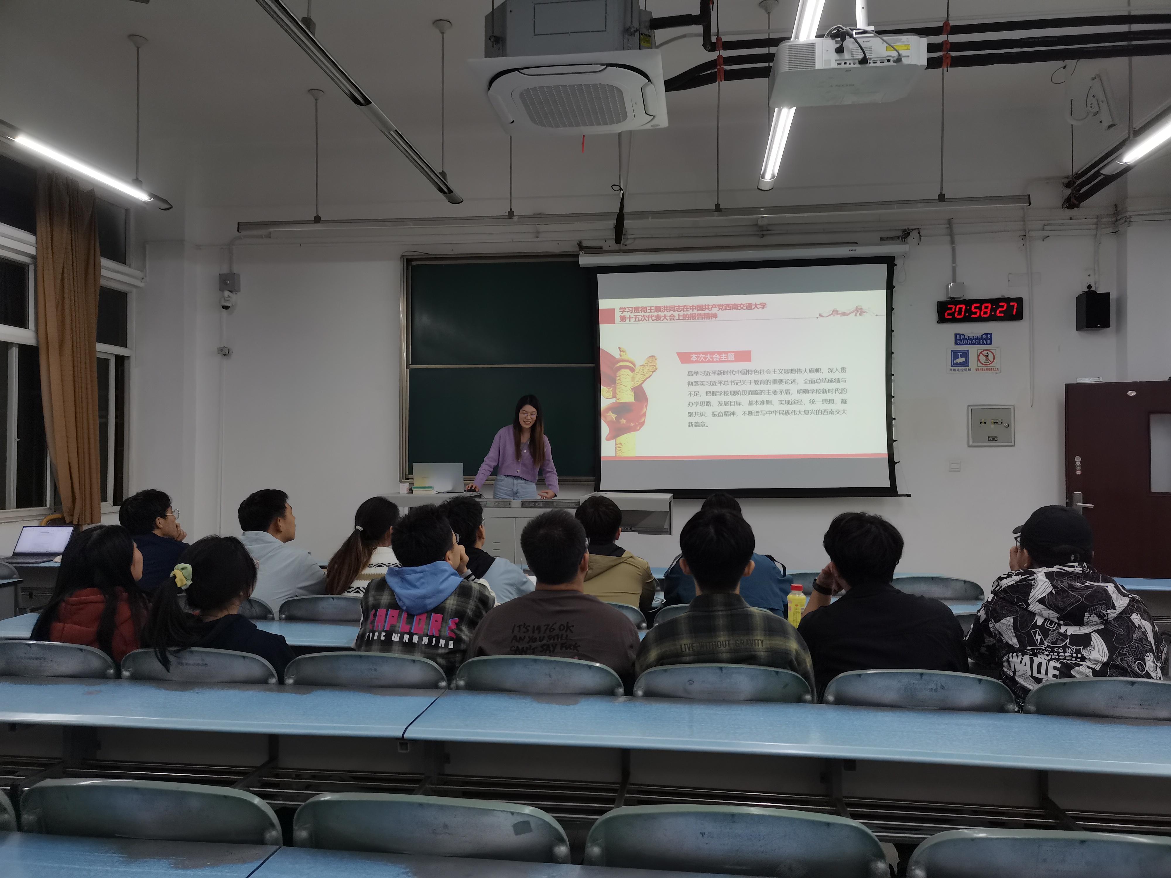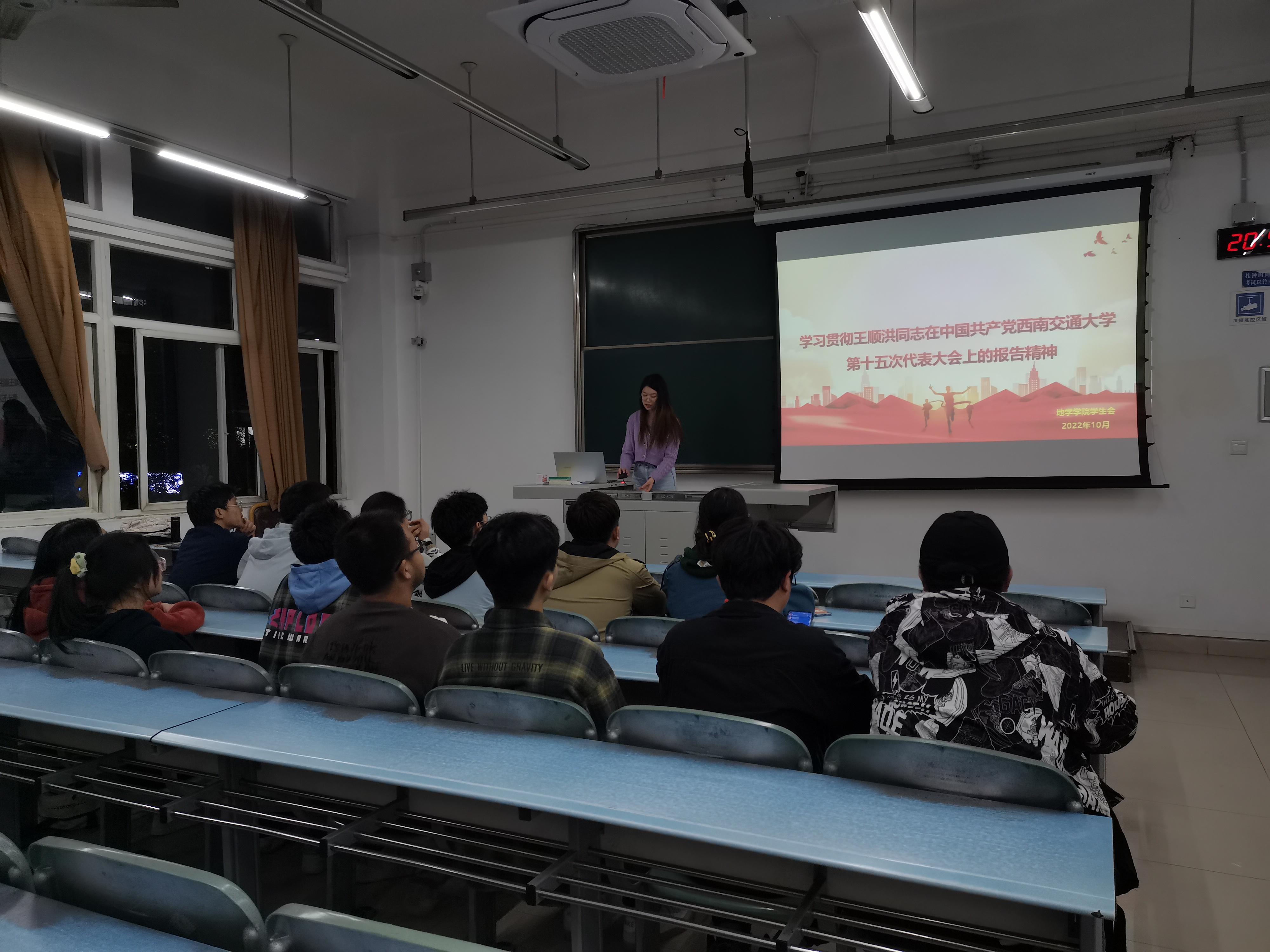 学生会组织学生会工作人员在犀浦校区2224教室集体学习了学校第十五次党代会精神。