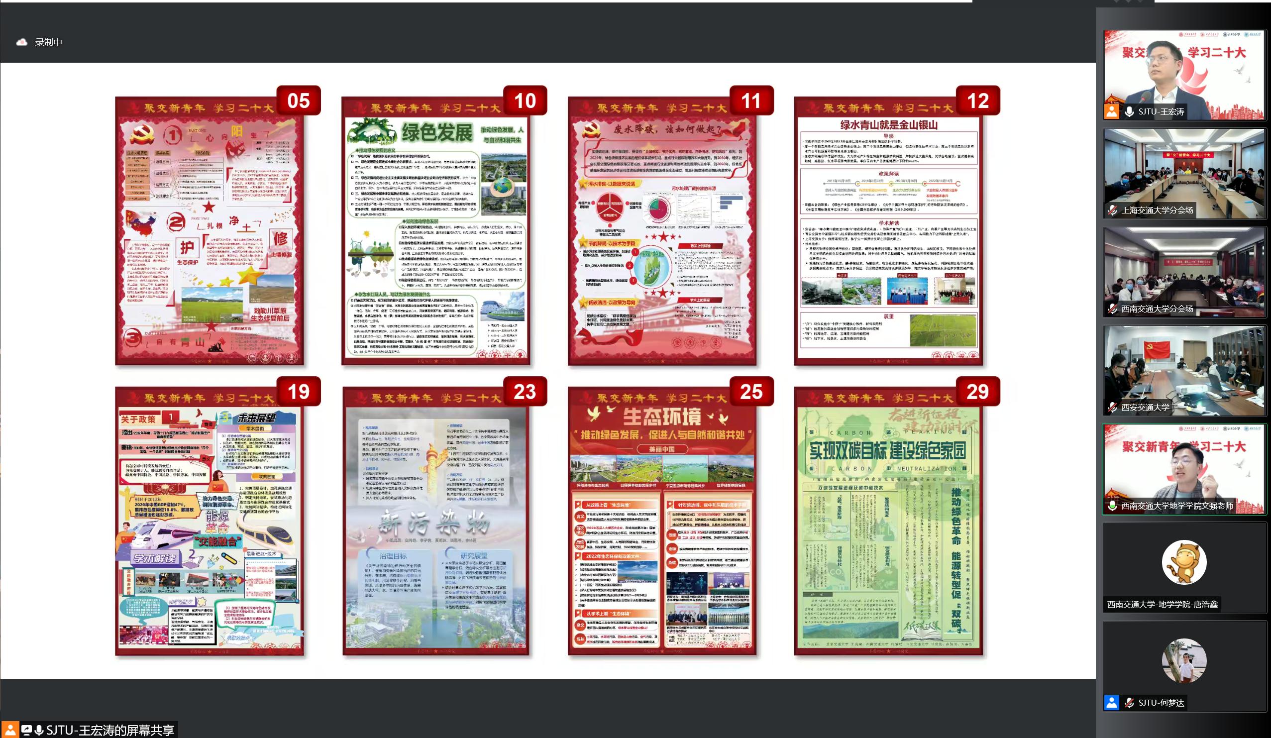 最后进行的是本次生态文明思想海报设计比赛评选活动,共有8组作品入围评选,通过对作品的文字内容、美术设计和创意亮点3个维度进行综合评价,最终产生了1个一等奖、2个二等奖和5个三等奖。来自四校的同学积极参与活动,活动接近尾声时,西南交通大学拉斯维加斯娱乐城