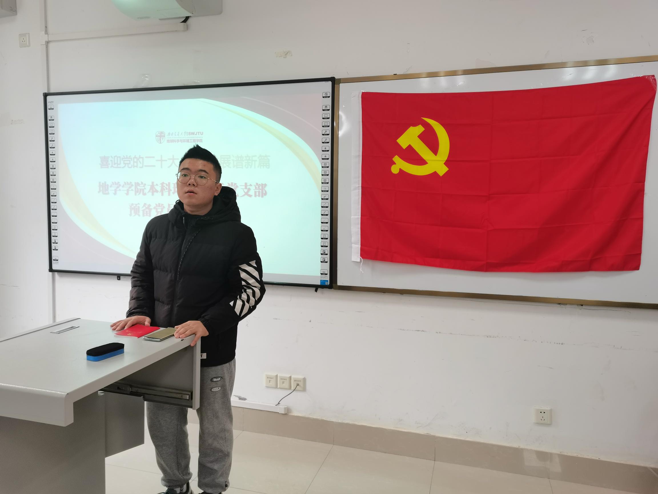 本科环境第三党支部于2022年12月9日14:00在X4134召开预备党员接收大会。本次会议由本科环境第三党支部副书记弓赛同志主持。