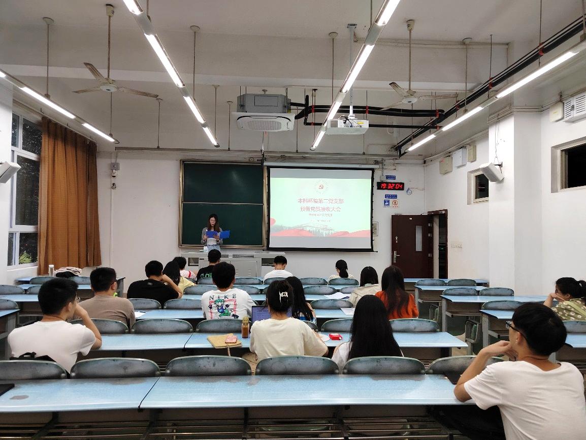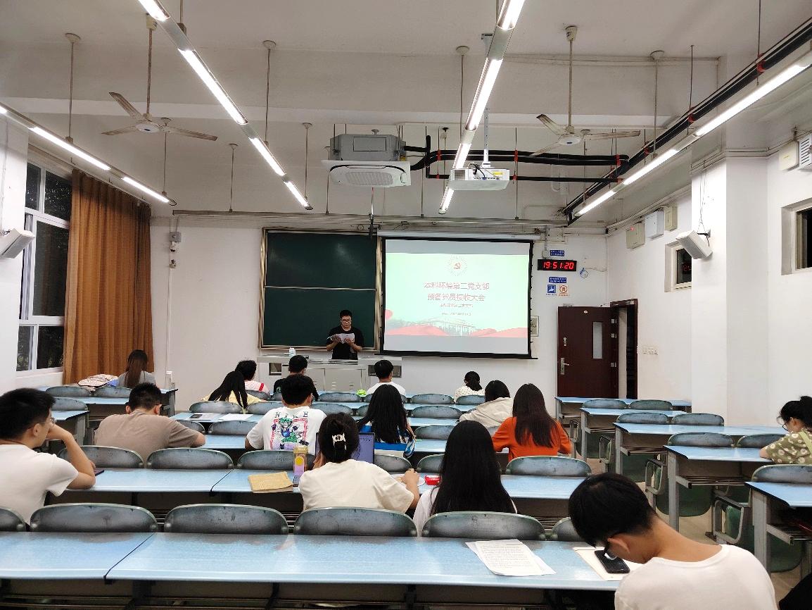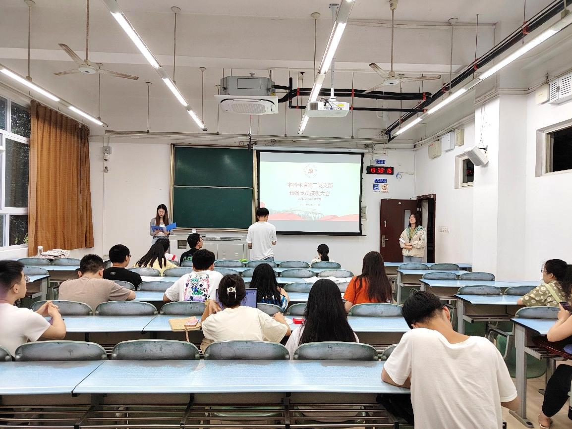 本科环境第二党支部于2022年6月10日19:30于X2221召开2022-01期预备党员接收大会。本次会议由本科环境第二党支部书记黄泳桦同志主持,支部内全体党员到场。