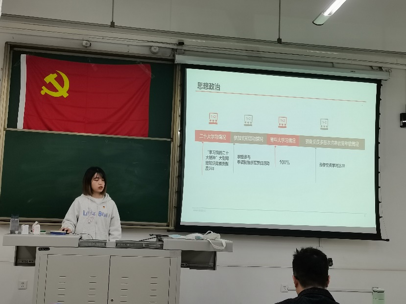 首先,由预备党员依次进行PPT汇报答辩,从思想政治、学习科研、志愿服务、实践活动等方面对自己在预备党员期间进行了总结与反思,并正式向党组织提出转正申请。几位同志都表示自己将在今后的工作、学习、生活上更加严格要求自己,不断加强党性修养,努力做好本职工作,全心全意为人民服务。
