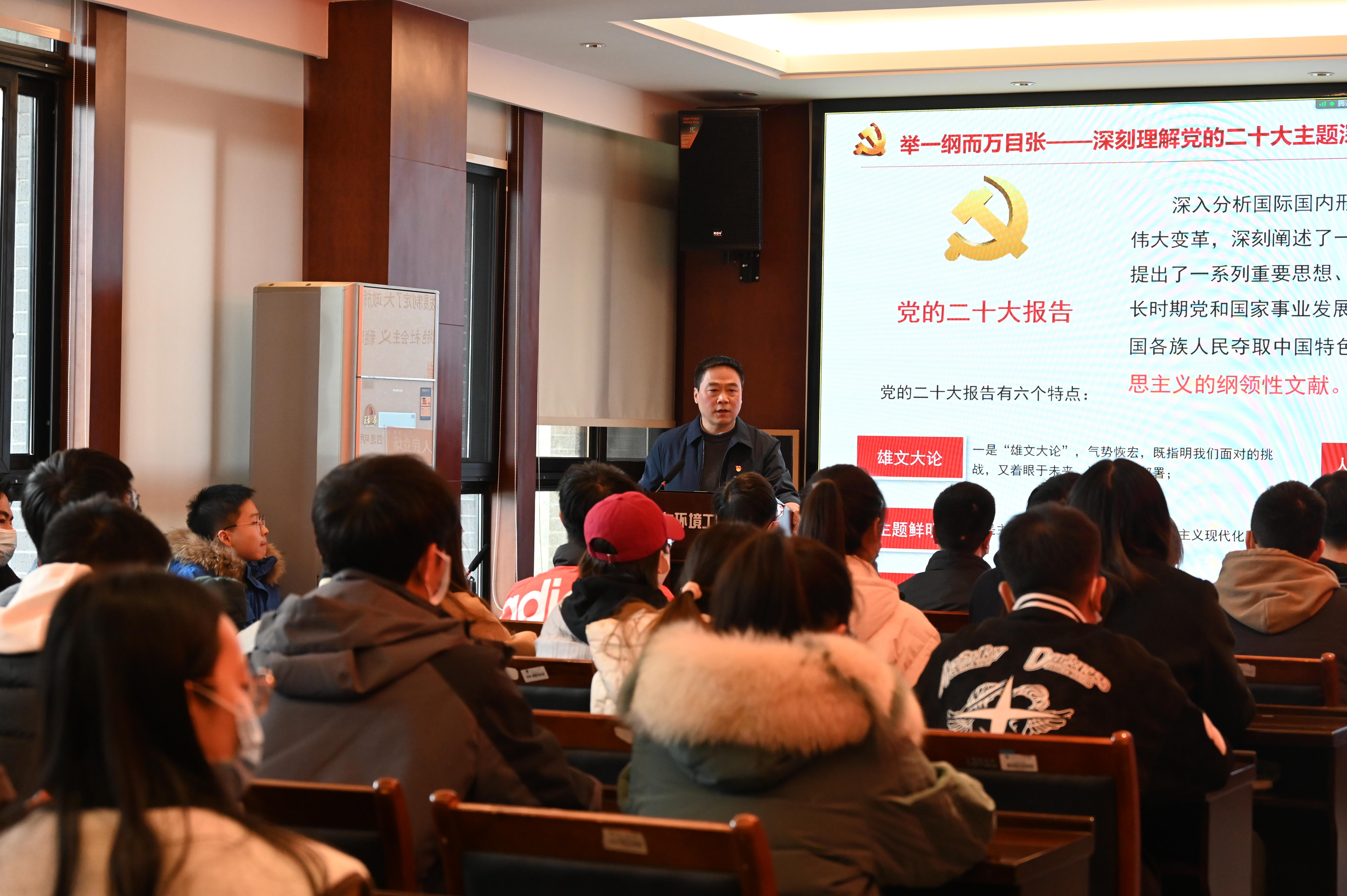 接着,关秦川书记以“《举一纲而万目张——深刻理解党的二十大主题深邃意蕴》”为题展开本次讲座。讲座之初,关书记总体介绍了党的二十大议程,所取得的成果,以及二十大的深远意义,关书记结合二十大的主题阐述了自己对新时代新征程的理解,希望同学们能牢牢记住二十大主题。