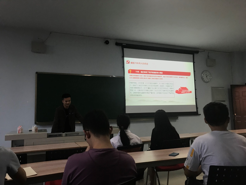 随后,为生动体现新中国成立70周年以来国家的各种巨变,激发各位党员同志的自豪感、归属感,孙东东同志带领大家一同观看并学习了“我和我的祖国”相关纪录片。纪录片以不同的年龄段的人的视角展现出全国各地各族儿女对祖国母亲的深厚感情,在与会党员中引起强烈反响。来自地质2019级一班的王晖同志上台发言说“自己亲眼见证着家乡的巨变,无论是学生的教育问题还是家乡的基础设施建设都有了很大的改善”。王晖表示家乡基础设施的兴修、家乡人民思想观念的改变、生活质量的提高都离不开国家的发展与支持。地质二班的路润琪同志以近些年来西安市的生活变化为例说明了祖国日益富强,人民的生活质量有了显著的提高。