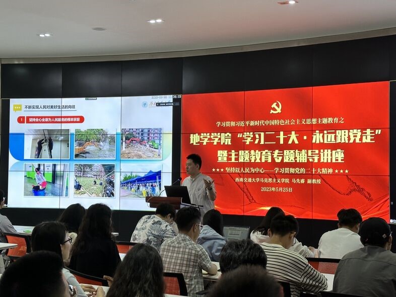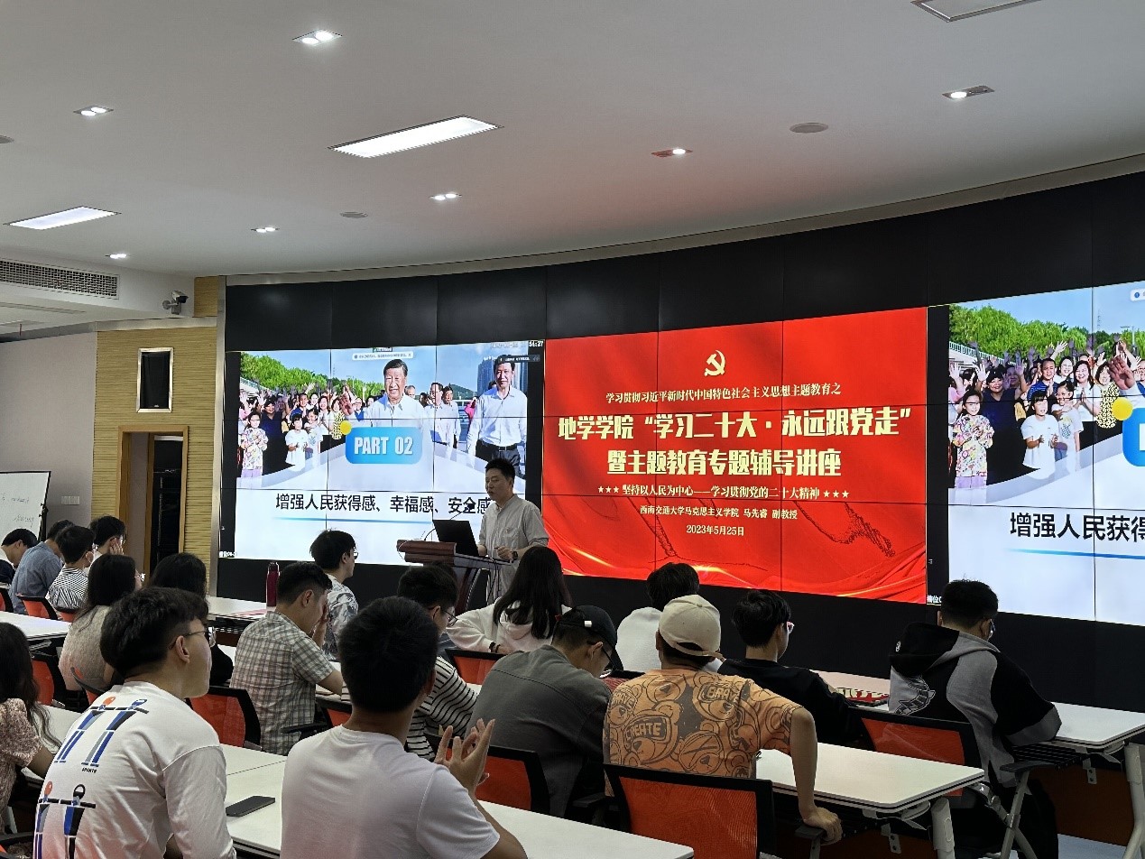 为深刻领会党的二十大精神,牢牢把握学习贯彻习近平新时代中国特色社会主义思想主题教育“学思想、强党性、重实践、建新功”的总要求,202352510:00,拉斯维加斯娱乐城 在X4243会议室举行“学习二十大·永远跟党走”暨主题教育专题辅导讲座,讲座由拉斯维加斯娱乐城 学生党建负责人文强主持,马克思主义拉斯维加斯娱乐城 副教授、西南交通大学学习贯彻党的二十大精神师生巡讲团成员马先睿老师主讲,院内各本、硕、博学生党员代表80余人参加讲座。