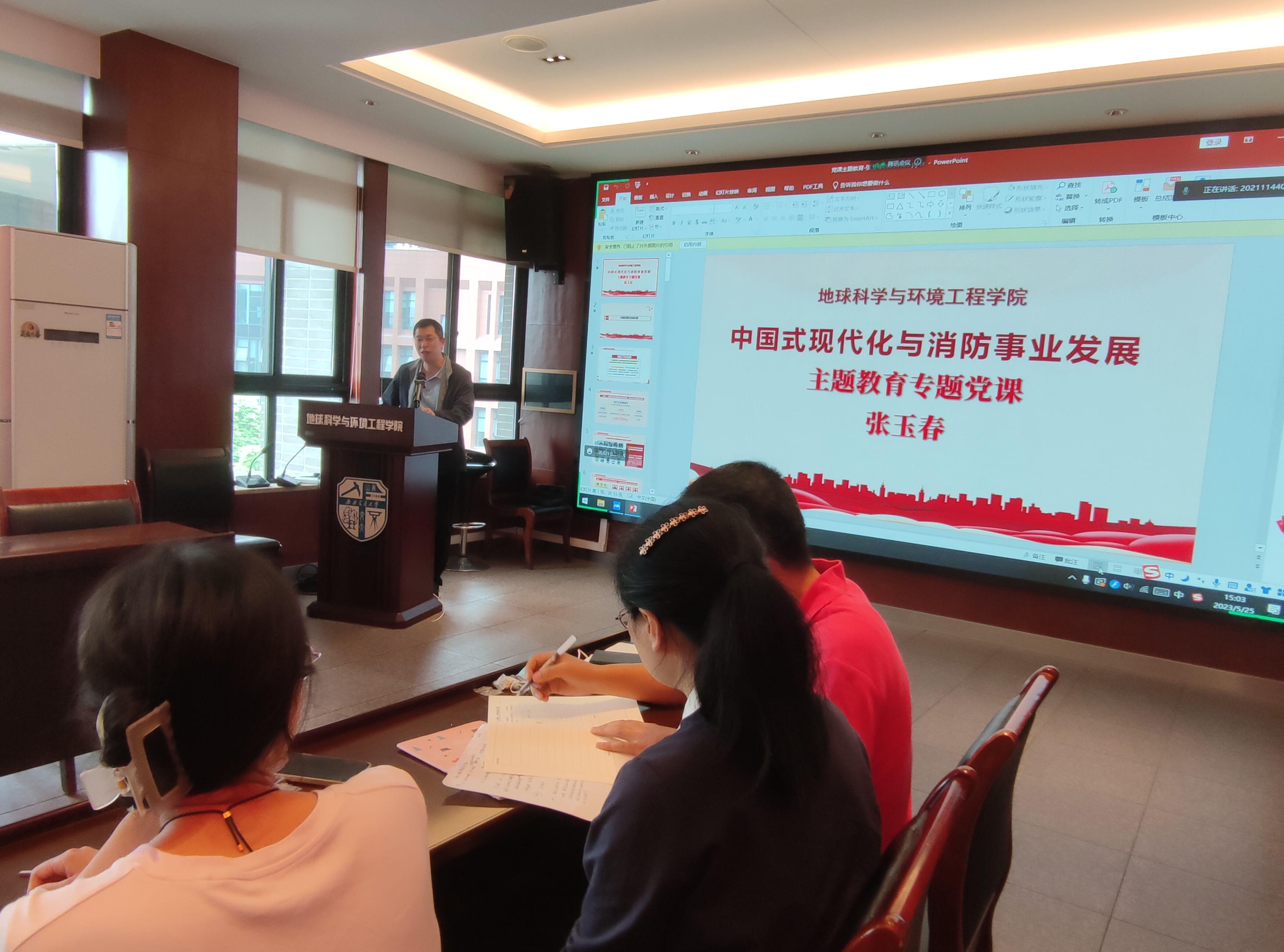 党委委员张玉春同志为我们讲授“学习二十大·永远跟党走”暨主题教育的专题党课。一、紧紧围绕着“中国式现代化与消防事业发展”这个大主题展开,深刻领会了中国式现代化的六个内涵,体会到中国式现代化与旧式现代化的本质区别,并指出了在中国特色社会主义现代化建设中所面临的机遇和挑战。二、特别地,强调了发展的保障安全所面临的挑战,聚焦现代化建设中存在的公共安全风险,引起了本专业的师生党员同志们的重视。三、张玉春同志将消防事业与中国式现代化结合,介绍了近年来我们国家消防事业的发展,鼓励学生党员们带动身边的同学勇于创新,将消防事业与新兴技术联系在一起,促进我校及社会消防事业的发展。