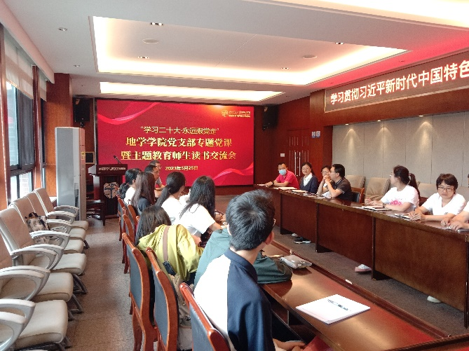 为深入开展学习贯彻习近平新时代中国特色社会主义思想主题教育,领会中国共产党第二十次全国代表大会精神,用党的新思想武装头脑,指导行动,提升师生党员的党性修养,本科消防党支部联合教工消防党支部和教工行政党支部于5月25日15:00在X4520会议室开展了“学习二十大·永远跟党走”专题党课暨主题教育读书交流会活动。本次活动由本科消防党支部书记陈馨怡同志主持。