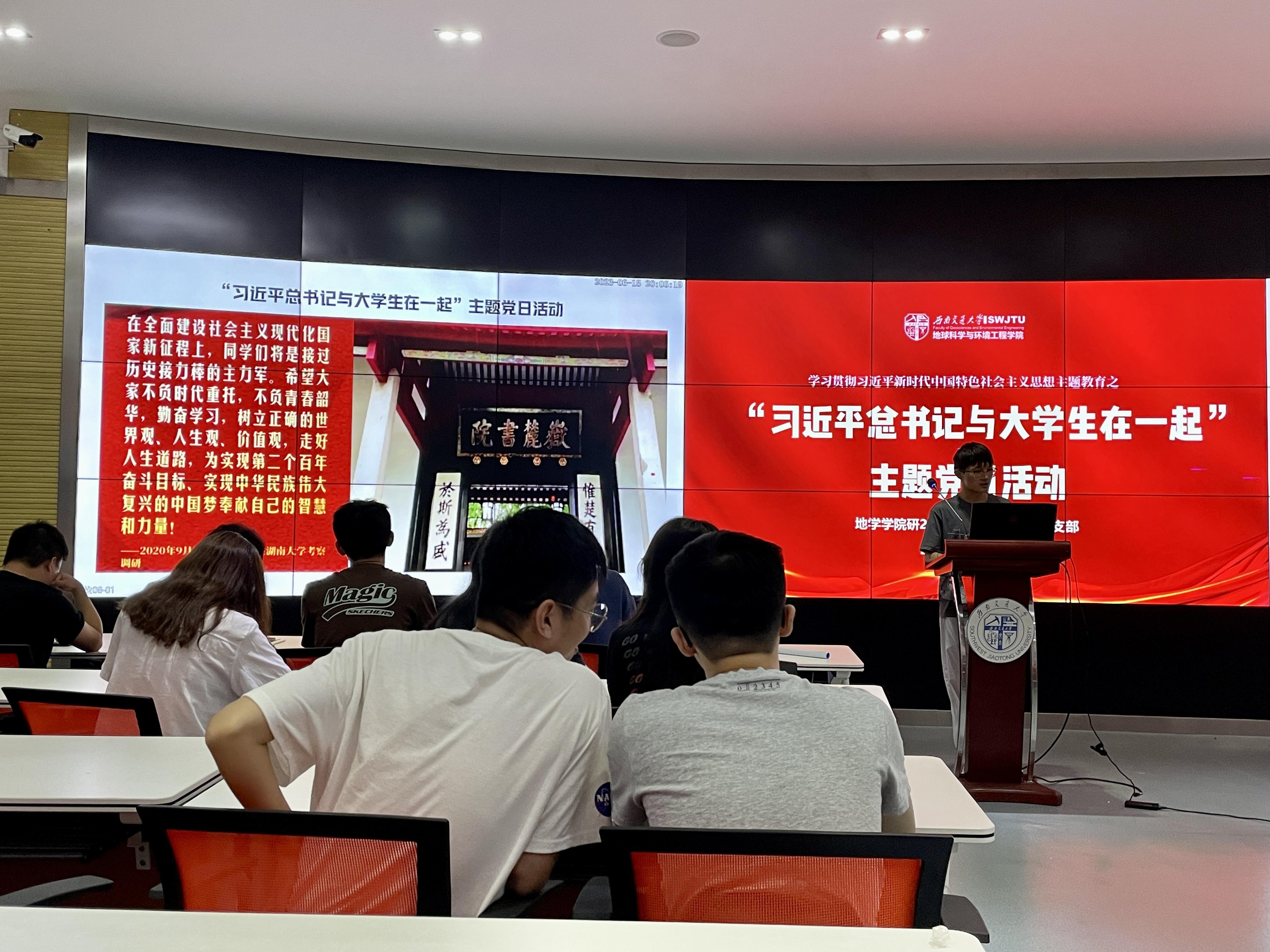 为了深入学习贯彻习近平新时代中国特色社会主义思想和党的二十大精神,我们组织了研21级测绘第一、第二党支部于6月15日晚上在X4243开展了以“习近平总书记与大学生在一起”为主题的党日活动。本次活动旨在深刻领会习近平总书记在学习贯彻习近平新时代中国特色社会主义思想主题教育工作会议上的重要讲话精神,教育引导学生党员深刻领悟“两个确立”的决定性意义,不断增强对“四个意识”的认识,坚定对“四个自信”的信念,做到“两个维护”。