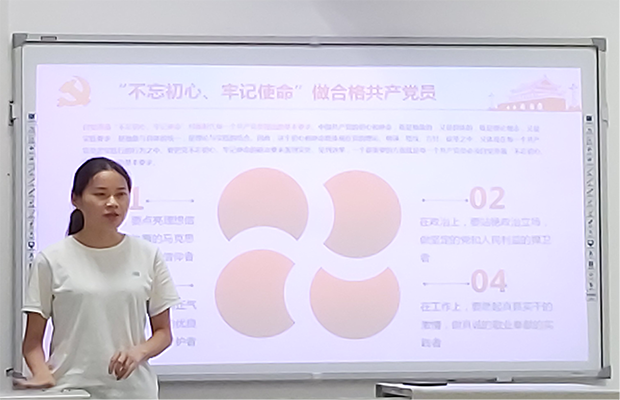 接下来,参会党员统一学习习近平总书记在“不忘初心、牢记使命”主题教育工作会议和在中央政治局第十五次集体学习上发表的重要讲话精神。党支部书记张芮同志为大家解读了“不忘初心,牢记使命”的背景、内涵、具体要求、重要意义,强调了“初心”是中国共产党建党之初为人民服务的初心,“使命”是带领中国人民实现富裕的伟大使命。