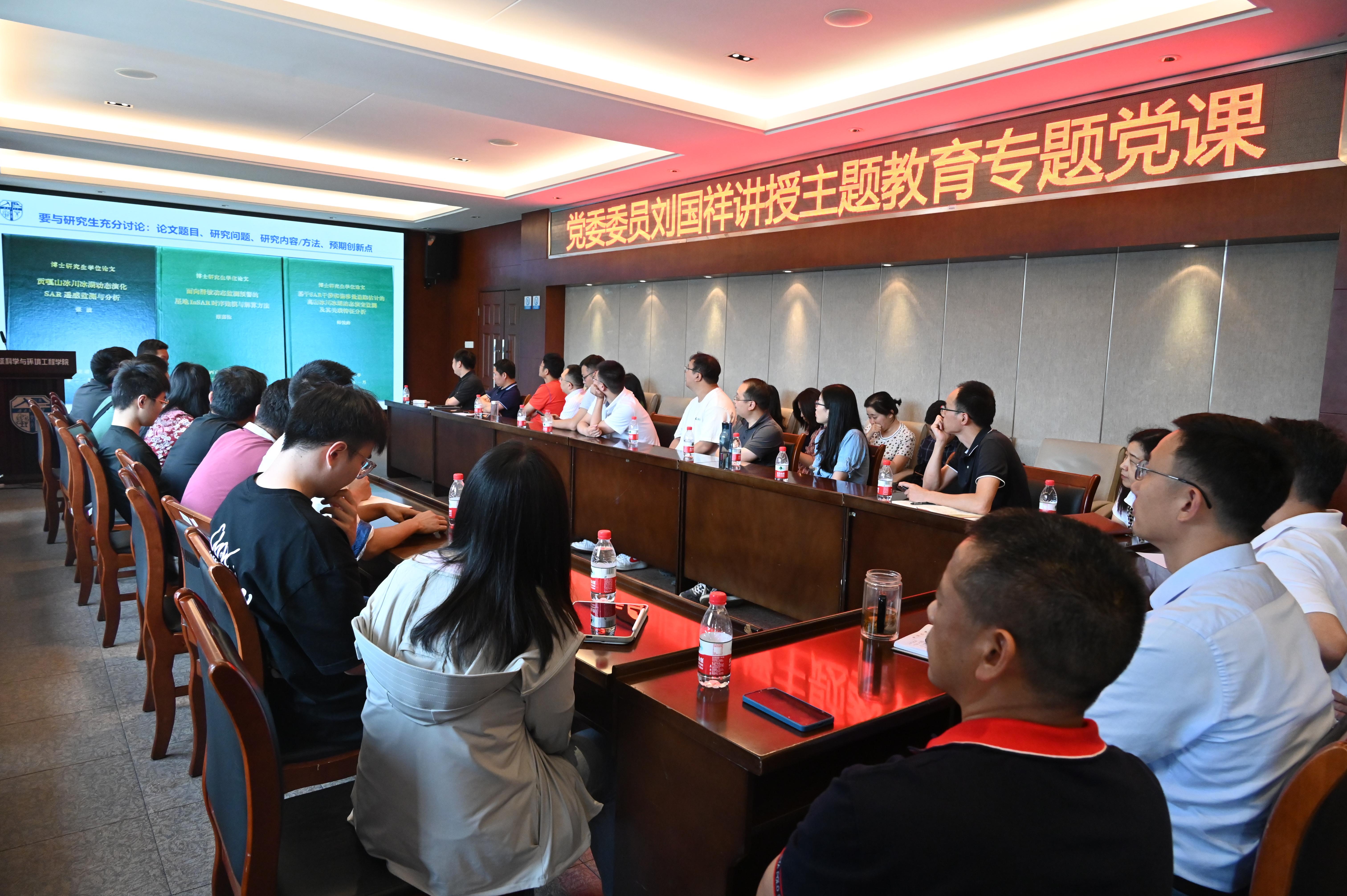 在犀浦校区4520会议室为教工测绘遥感信息、教工行政、博士测绘第二党支部讲授主题教育专题党课,党课主题为“优秀研究生导师及团队建设实践与思考”。