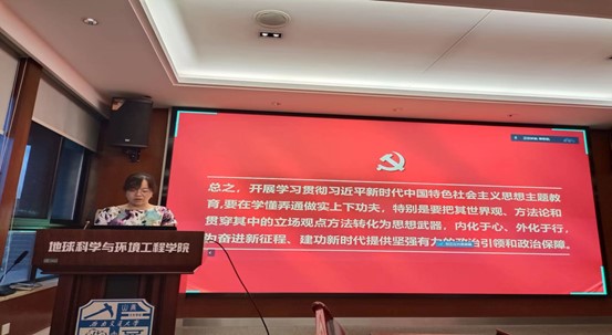 党委委员龚正君老师在X4520教室为研21级环境第一党支部、第二党支部讲授“在学习贯彻习近平新时代中国特色社会主义思想主题教育工作会议上的讲话”专题党课。