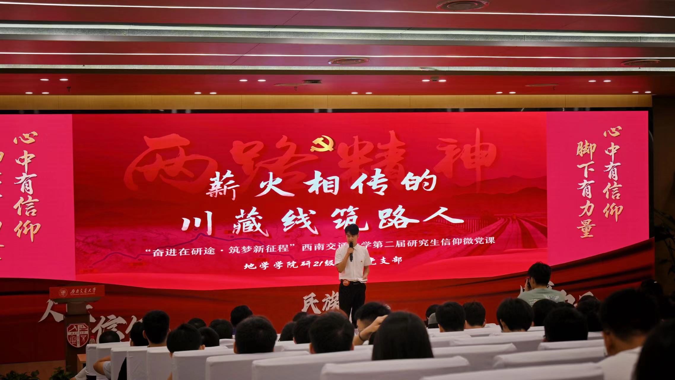 近日,西南交通大学第二届“信仰”——研究生微党课制作评选展示活动落下帷幕。本次活动由学校党委组织部、党委宣传部、党委学生工作部主办,62 个研究生党支部参加了此次展示活动,是学校推动学习贯彻习近平新时代中国特色社会主义思想主题教育进一步走深走实的校级特色示范活动。