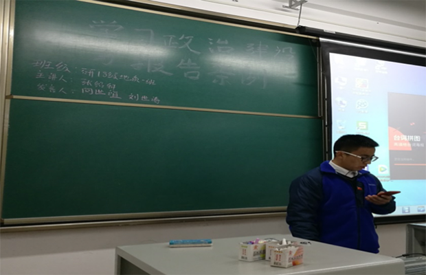 3月29日晚18时。研一18级地质一班党支部在X9136教室开展集体学习活动,主要学习内容为《中共中央关于加强党的政治建设的意见》。会议由支部书记张绍科同志主持。