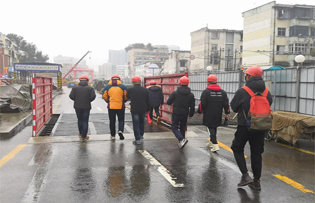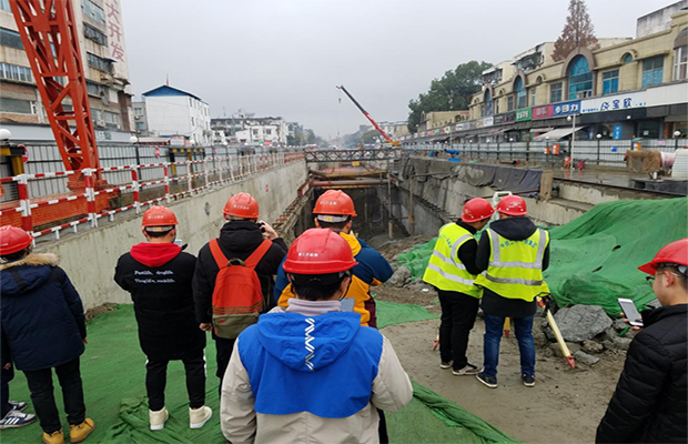 首先,全体党员来到位于西南交通大学地铁六号线九里站施工现场,在佩戴安全帽后有序进入。在现场监理工程师的带领下,首先来到的是明挖法的现场参观施工。