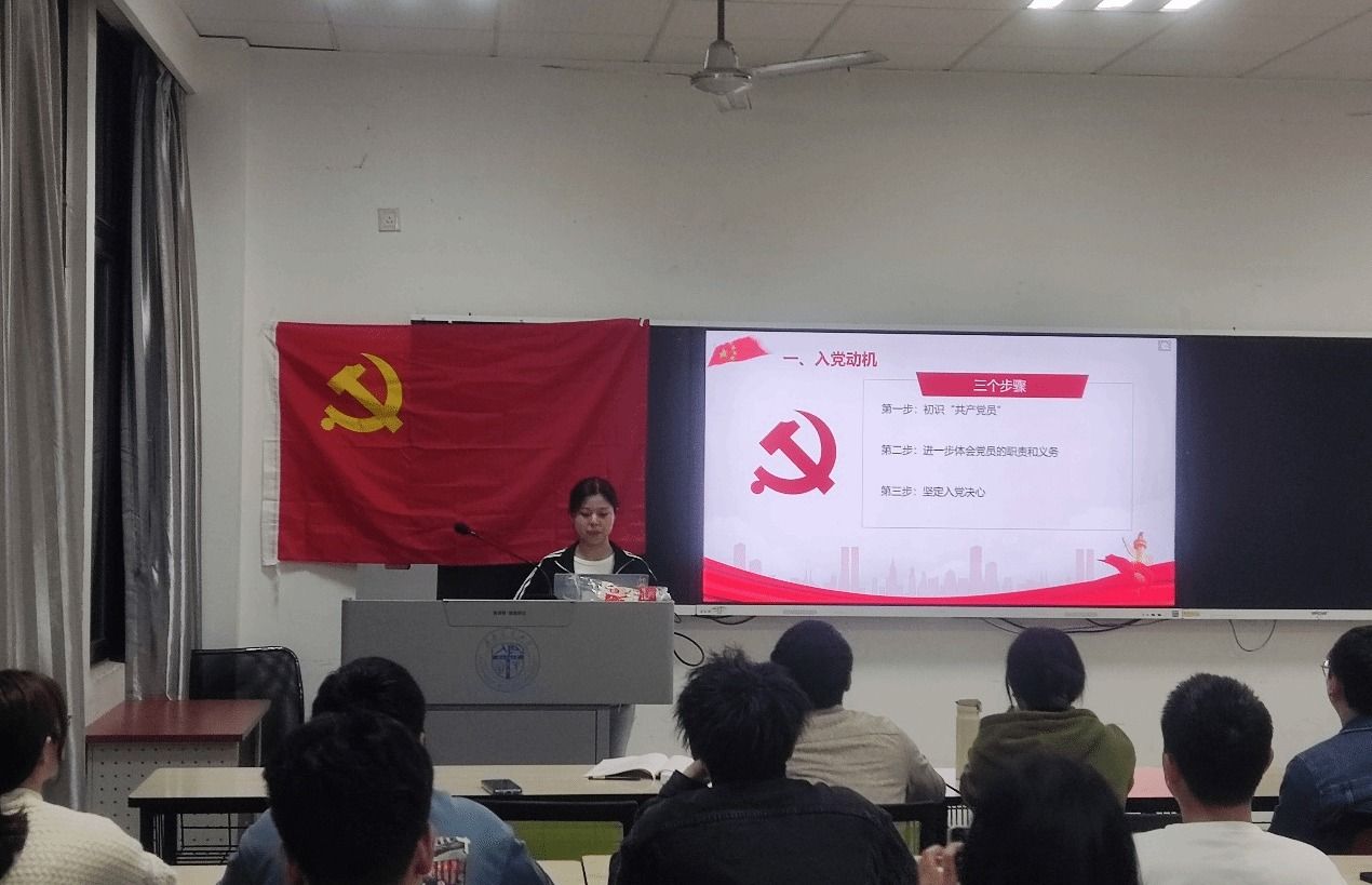 第三位答辩人陈星宇同志分别从入党动机、入党积极分子培育期间的认识和体会、思想政治、作用发挥以及自身不足等五个方面进行汇报。陈星宇同志认为入党代表着使命感,代表着理想信念,代表着责任和担当。因此,她在向党组织靠拢的过程中,始终保持积极向上的心态,在面对困难时永不退缩。