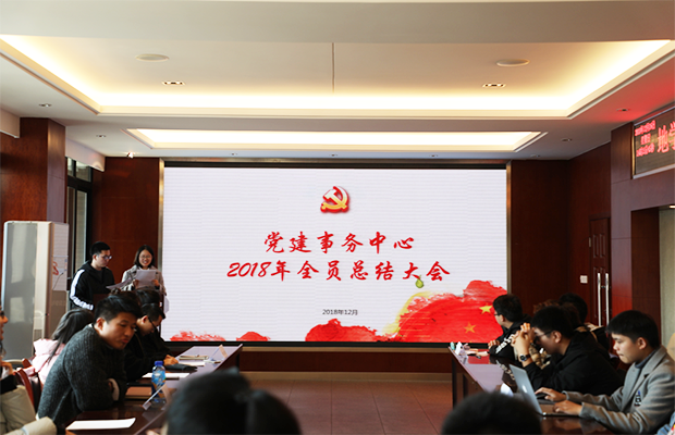 党建事务中心于4520会议室召开2018年全员工作总结大会,会议由党建事务中心蓝再成、张昊雪主持,党建事务中心主任李晓宇和党建事务中心全体成员参加此次大会。