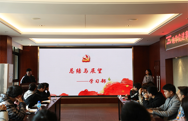 在各部门工作总结结束后,党建事务中心前任助理文强、学习部前任部长任雨欣分别针对自己在党建中心的工作经历和三年多来的学习生活两个方面向在场同学们分享了自己的体会,并对同学们可能遇到的困惑提出了自己建议。