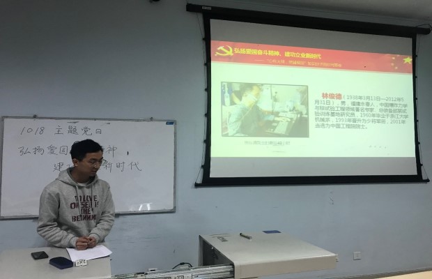 为响应习近平总书记针对“弘扬爱国奋斗精神”作出的一系列重要指示,听从校党委组织安排,2018年10月18日下午4时,研17级环境二、三党支部在西南交大犀浦校区X9133教室联合开展了“弘扬爱国奋斗精神,建功立业新时代”主题党日活动。在广大知识分子中深入开展“弘扬爱国奋斗精神、建功立业新时代”活动,是学习贯彻习近平总书记关于弘扬爱国奉献精神的一系列重要指示精神、加强团结引领服务知识分子的重要举措,对于建设一支矢志爱国奉献、勇于创新创造的优秀人才队伍,把各方面优秀知识分子集聚到党和人民的伟大奋斗中来,形成不懈奋斗、团结奋斗的生动局面,具有十分重要的意义。参加会议的主要人员有研17级环境二、三党支部学生党员、预备党员及积极分子。