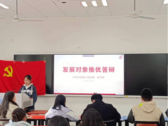 本科环境第三党支部在X4134召开2024-01期发展对象答辩大会。本次大会由本科环境第三党支部书记孙启轩同志主持,指导老师杨冰倩老师参会。