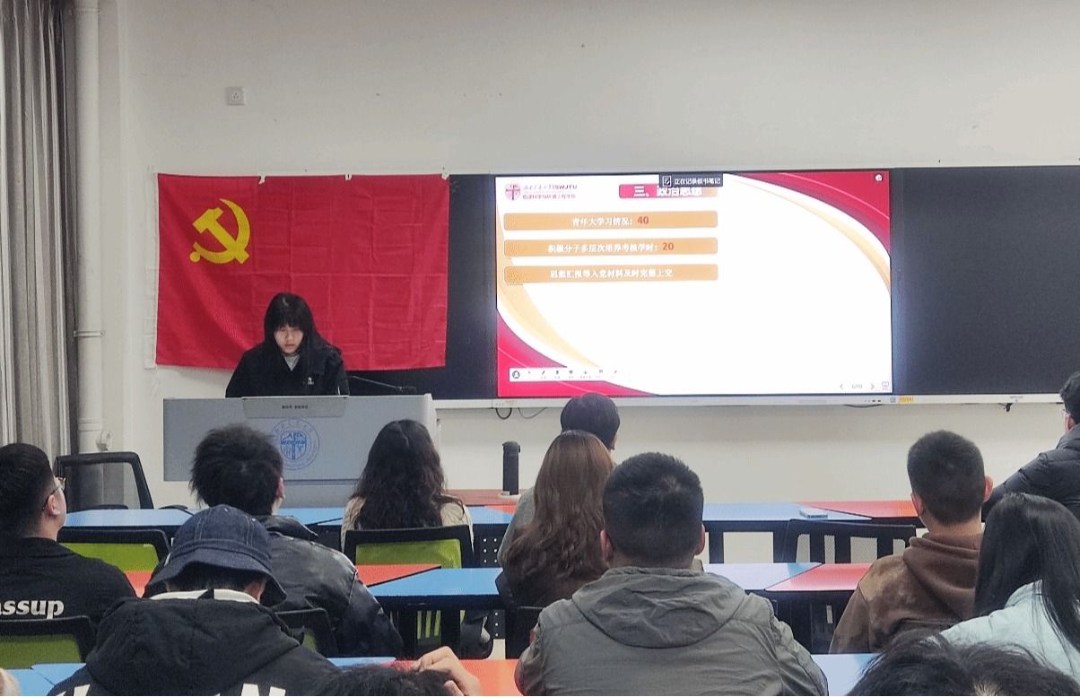 会议伊始,刘翔同志介绍了本次会议的主题,我党支部本期发展对象名额为2名,候选名额为1名。随后邀请班级团支部书记邓江渝同志介绍了四位候选人在青年大学习、科研成绩、班级建设及贡献等各方面的基本情况,无论是自身道德还是政治素养,这四位同志都是符合成为发展对象的条件。