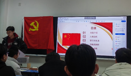 主题党日活动结束后,由三位候选人陈炜、罗嘉潍和王晋昆分别作领学人并进行发展对象答辩,主要包括入党动机以及培养教育的认识体会、思想政治、道德品行、自身基本情况、培养教育期间的收获等。每位候选人陈述、展示完毕后,与会成员紧接着对其展示内容进行提问,拟推举2人作为最终人选。