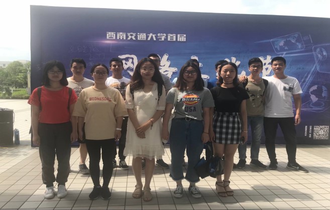 2015级本科第一党支部全体党员同志在标有“西南交通大学首届网络文化节”的宣传展板前合影留念。