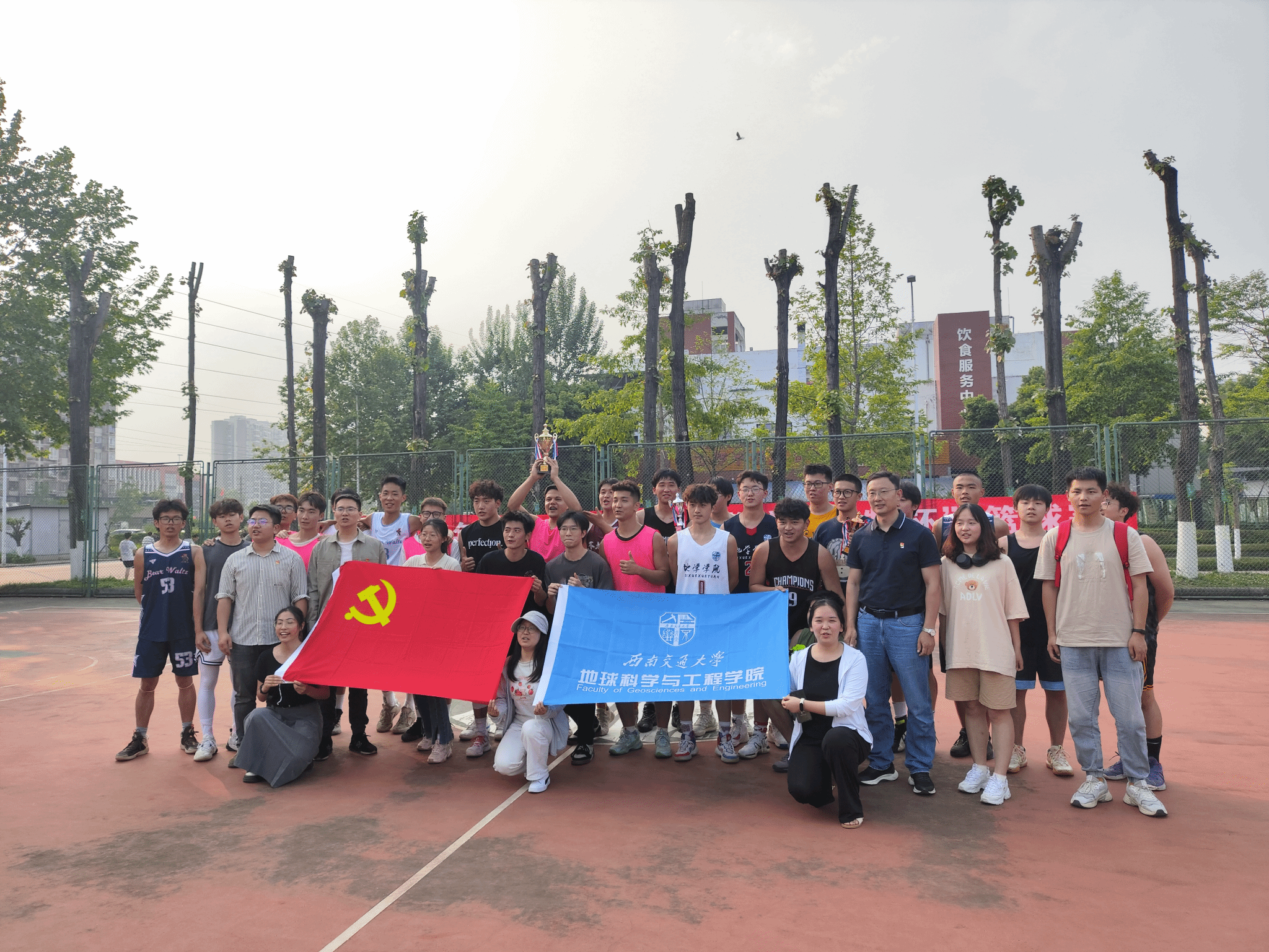 党旗飘扬球场,篮球传递力量,展现支部风采,共筑团结新篇章!在“红鹄杯”篮球比赛中,本科地质资勘党支部更好地理解了团队协作的重要性,增进彼此之间的信任和默契,进一步促进了党支部的凝聚力,形成团结一致、共同奋斗的良好氛围。希望党支部在接下来的生活学习中,继续发挥运动员的拼搏精神,不畏艰难,勇攀高峰!