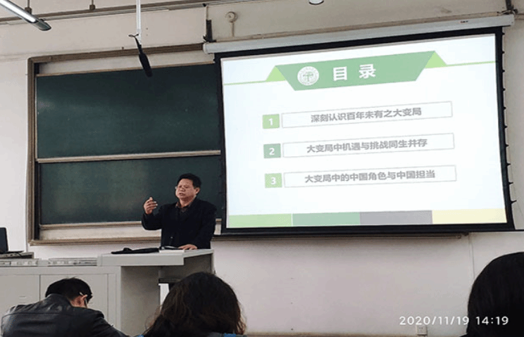 面对世界大变局,中国作为世界上最大的发展中国家,发挥着越来越重要的作用。在讲座的后半部分,姚发明副校长强调,面对世界的变局,党员们要坚持中国共产党的领导,坚定中国特色社会主义的道路。我们坚持走和平发展道路,积极参与全球治理体系改革,推动构建人类命运共同体。在应对气候变化、维护世界和平与安全等方面,中国展现了负责任的大国形象。他还提到,党员们应当注重学习和实践,不断提高自身的理论水平和政治觉悟,成为新时代中国特色社会主义事业的坚定支持者和践行者。