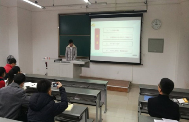 会议上,蒋星同志从习近平新时代中国特色社会主义思想、实现中华民族伟大复兴的中国梦、党是领导一切的等十个方面对十九大审议并通过的新党章作了全面阐释和说明。另外,喻崇湖同志从十九大会议、中国特色社会主义新时代、两个“奋斗十五年”以及十九大对青年一代的寄语四个方面深入浅出地对十九大精神作了解读,并引用一段话勉励大家:勇做时代的弄潮儿,在实现中国梦的生动实践中放飞青春梦想,在为人民利益的不懈奋斗中书写人生华章。