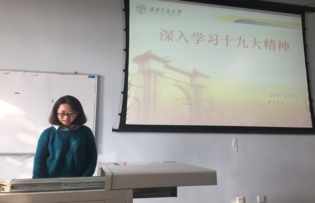 2017年11月13日星期一上午9:20,研16级环境二班党支部开展的“深入学习党的十九大精神”党日活动在西南交通大学犀浦校区X9133教室进行。主题为学习十九大精神,旨在通过党员同志们谈谈对十九大精神的理解,结合自身进行交流,加强党员同志们的党性修养。本次活动由班级党支部书记易小莹主持。