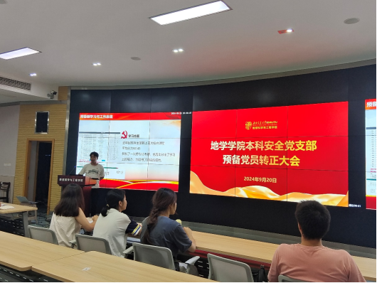 为做好2024年发展党员工作,切实提高党员发展质量,严把党员发展质量关,本支部于2024年9月20日在X4243教室召开2024-02期发展对象答辩大会暨预备党员转正大会暨“深化改革推进中国式现代化,强化教育科技人才支撑”主题党日活动。本次会议由本科安全党支部全体成员及文强老师、梁爽老师参加,参会党员共有11名,其中正式党员3名,预备党员8名。