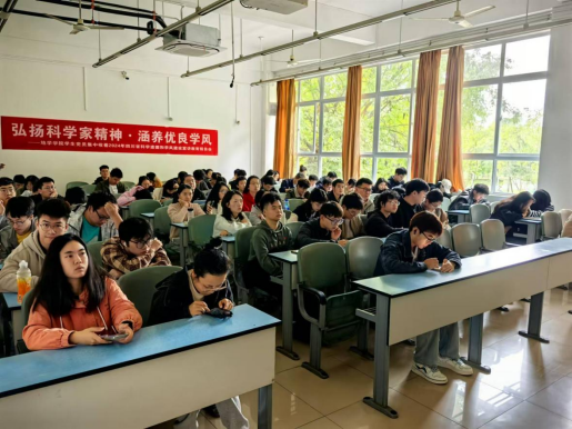·四川省人民医院院长杨正林,中国工程院院士、成都中医药大学首席教授陈士林,围绕弘扬科学家精神、涵养优良学风等内容,在成都中医药大学分别作题为《弘扬科学家精神做新时代医学科研人》和《文化自信促进科技自立自强》宣讲教育报告。在观看过程中,同学们认真收听,积极记录宣讲过程中主讲人所提到的科研人应有的科研态度、应具备的科研精神,以及新时代科研人应有的责任、使命与担当。同时,同学们也深刻理解了文化自信在科技领域所发挥的重要作用。