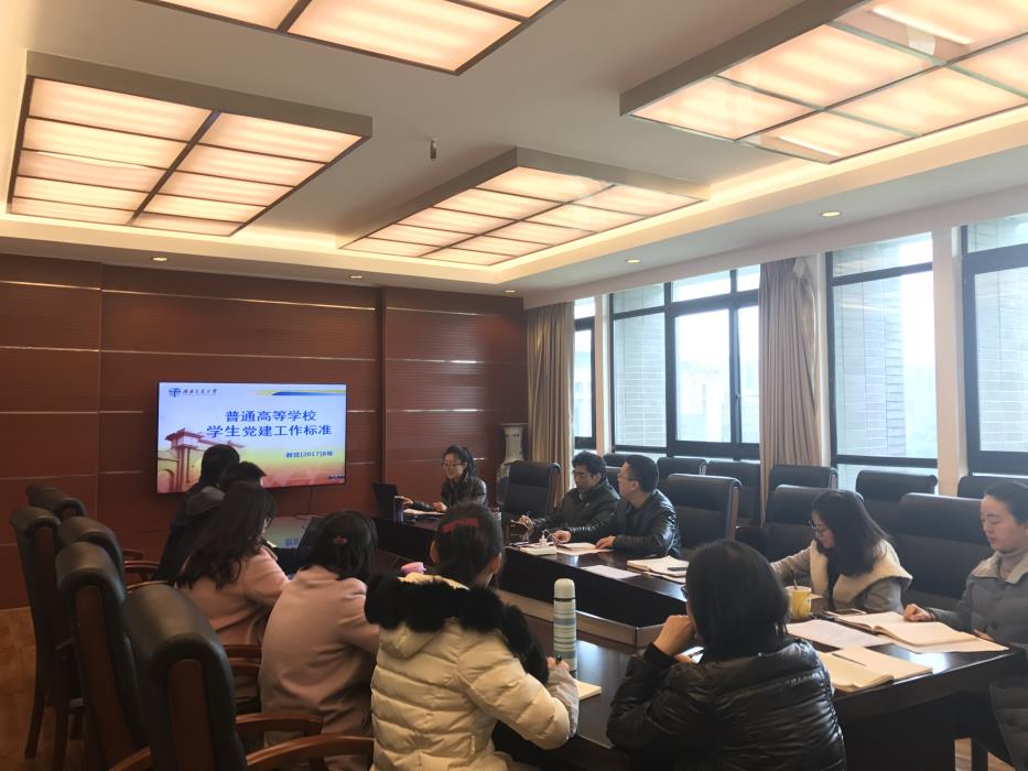 学工组党支部在犀浦校区4531会议室召开支部会议,集体学习中共教育部党组近日印发的《普通高等学校学生党建工作标准》。学工组全体成员参加会议,拉斯维加斯娱乐城