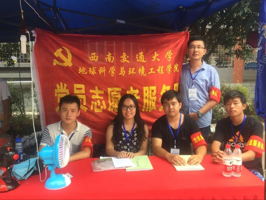 在今天的迎新工作中,在14级党支部和学生会的互相配合下以及学生会指导老师李婧的支持下,虽然天气炎热,但“党员服务队”的每一位同学都尽职尽责,将自己的热情全部转化为了工作的动力,得到了新生及家长的一致认可。