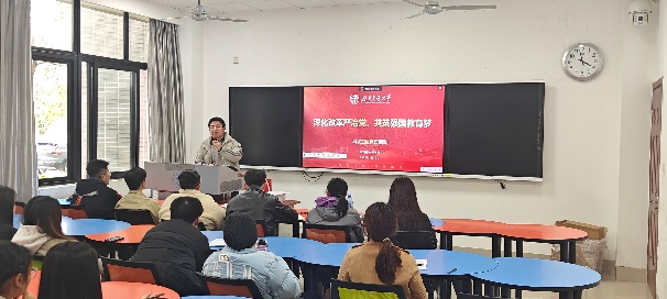 随后开展“深化改革严治党,共筑强国教育梦”主题党日活动。此次党日活动分为三个环节,一是学习领会习近平总书记的重要讲话精神,二是学习《教育强国建设规划纲要(2024-2035年)》,三是弘扬雷锋精神。支部书记结合学雷锋月这一特殊节点,希望支部成员在未来能积极主动参与志愿服务活动,切实做到帮助身边同学,全心全意为人民服务。