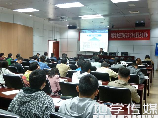 各年级辅导员、教师党支部书记、研究生党支部书记和本科生党支部书记参加了本次会议。会议包括两项议程,一是徐瑞堂书记布置近期党委换届工作事宜,二是傅尤刚副书记对参会人员进行党员业务技能培训。